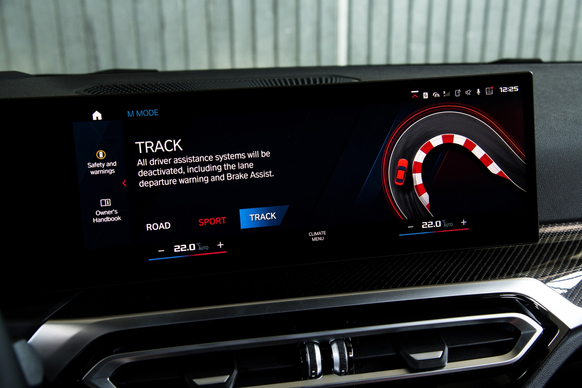 Además del M Traction Control, el M Drive Professional de serie también incluye el M Drift Analyzer y el M Laptimer. Además, el botón de modo M en la consola central se puede usar para ajustar tanto el nivel de actividad del sistema de asistencia al conductor como el contenido que se muestra en la pantalla de información y en el Head-Up Display, con una selección de configuraciones ROAD, SPORT y TRACK.