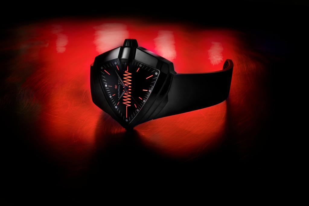 Cuando salió a la venta en 1957, el Hamilton Ventura sorprendió al mundo de la relojería y del diseño con su innovador circuito eléctrico y su atrevida forma de caja. Concebido por el vanguardista diseñador industrial Richard Arbib, el innovador Ventura sigue vivo hoy en una nueva versión especial extragrande con una esfera que se ilumina en rojo.