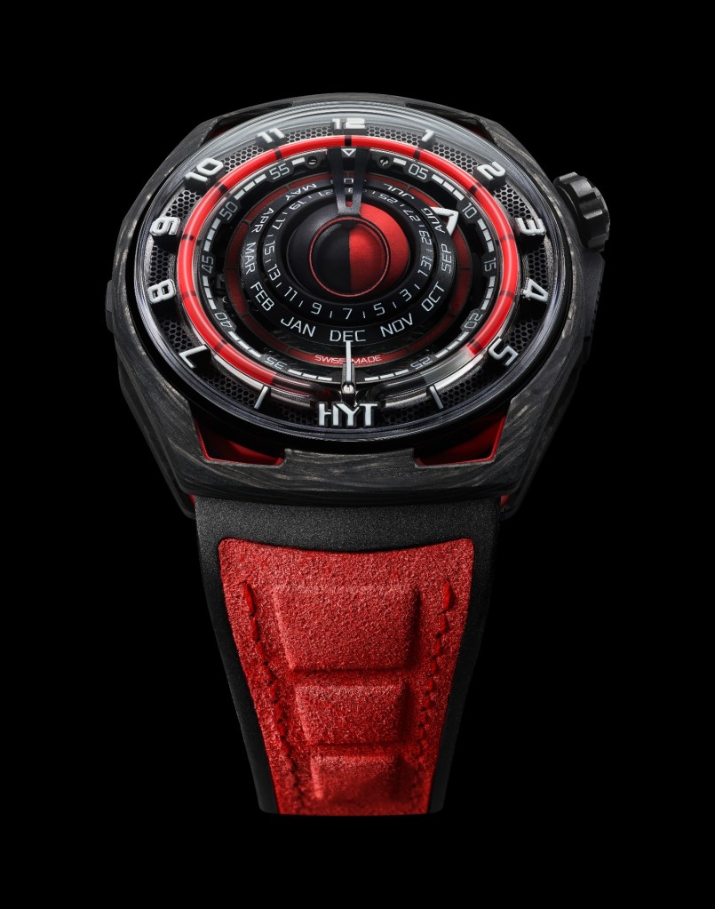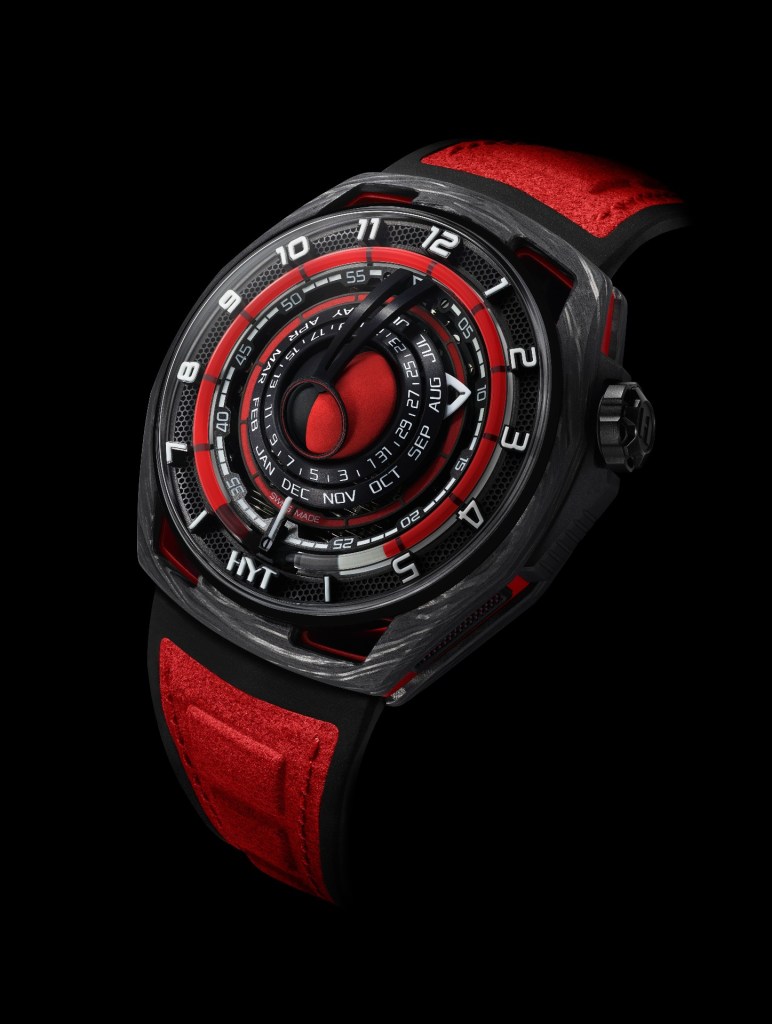 HYT vuelve a sorprender con una exclusiva redefinición sensorial de la percepción del satélite natural de la Tierra. Los amantes de los relojes con fase lunar están a punto de ver en rojo.