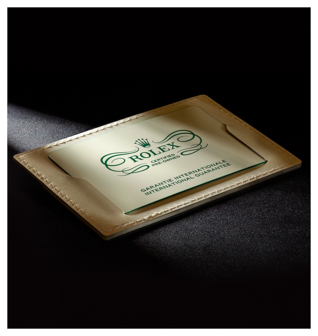 El sello Rolex Certified Pre-Owned que acompaña a los relojes en cuestión simboliza su condición de relojes Rolex de segunda mano certificados. La tarjeta de garantía Rolex Certified Pre-Owned, entregada en el momento de la venta, confirma oficialmente que el reloj es auténtico y garantiza su buen funcionamiento. Esta tarjeta lleva la mención «Certified Pre-Owned» y sirve de certificado oficial de autenticidad.