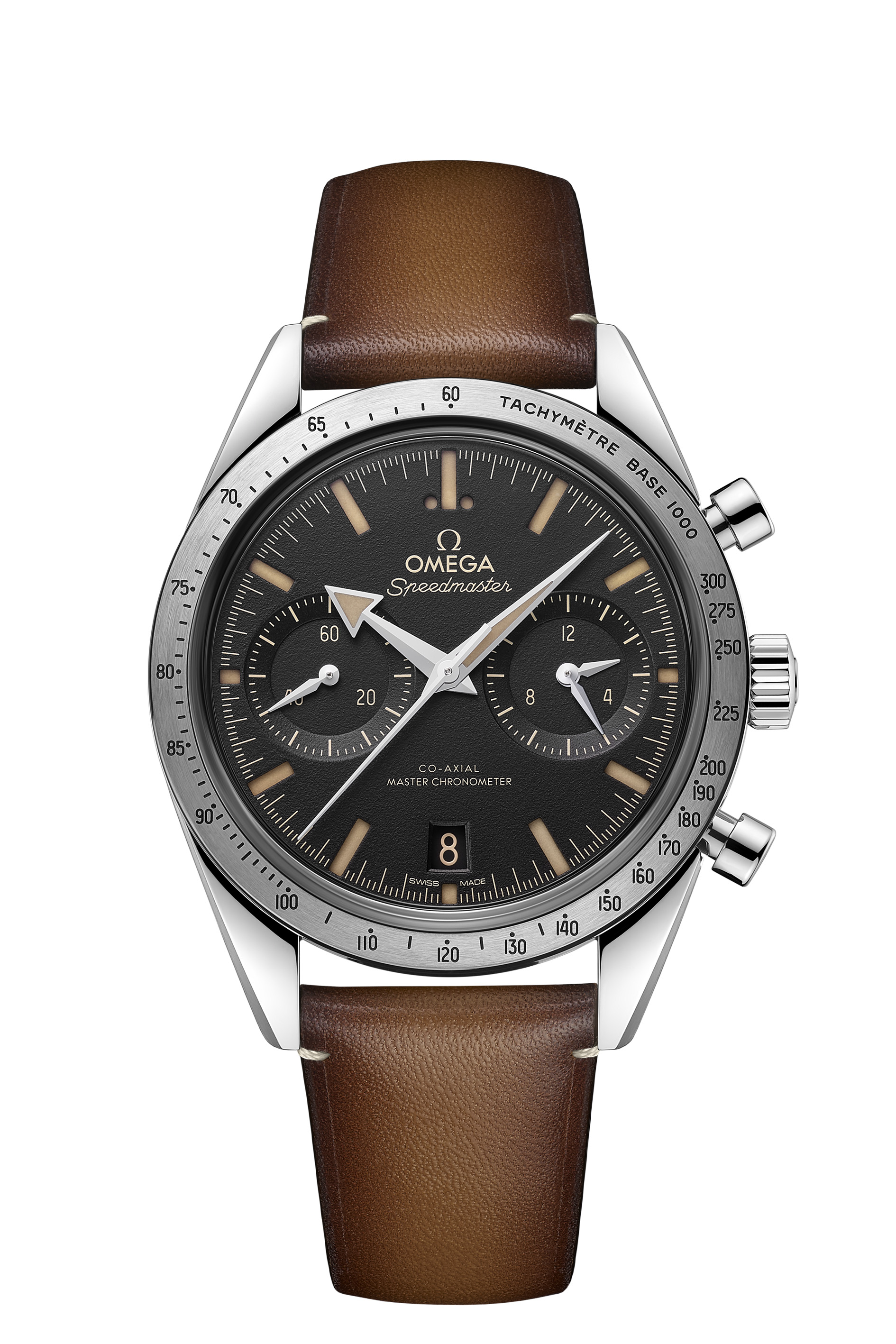 Como su nombre indica, el Speedmaster ’57 (abajo) es emblemático del diseño original del Speedmaster, que se lanzó en 1957 para pilotos de coches de carreras e ingenieros en la pista. Como homenaje, la actual colección Speedmaster ’57 de ocho nuevos relojes se presenta con un estilo estilizado, coloridas opciones de esfera, un brazalete vintage y un excepcional movimiento Co-Axial Master Chronometer 9906, que alcanza la cima de la precisión, la resistencia magnética y el rendimiento.