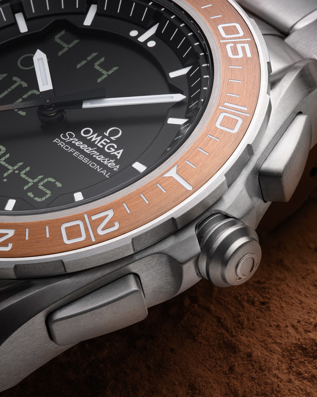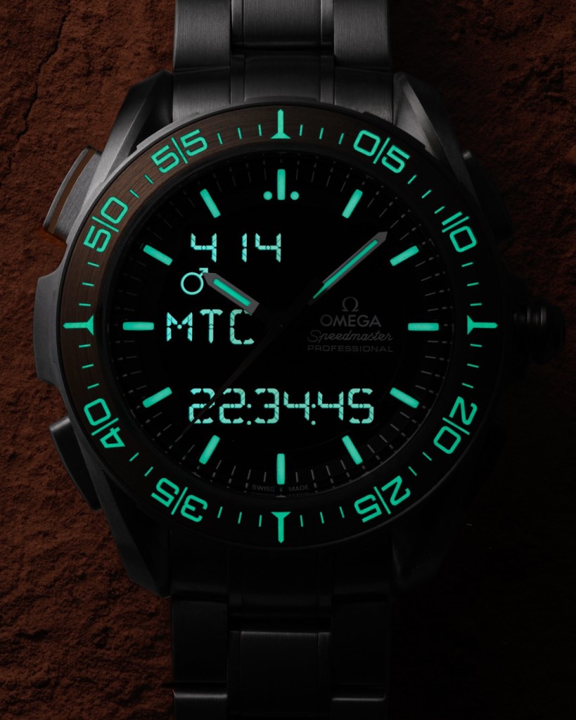 Impulsado por el Calibre 5622 de Omega, un movimiento de cuarzo termocompensado de alta precisión, el Marstimer ofrece una serie de valiosas herramientas para científicos e investigadores en el campo de la exploración espacial. Sus funciones, desarrolladas bajo licencia patentada por la ESA, incluyen una función MTC para seguir la fecha y la hora del sol de Marte en el primer meridiano, así como una innovadora brújula solar para encontrar el norte verdadero en la Tierra y en Marte.