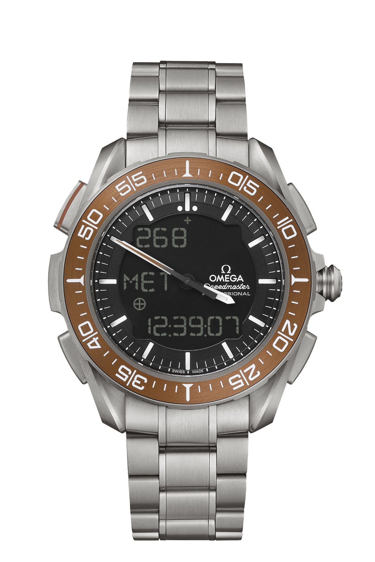 El exclusivo cronógrafo de 45 mm, con caja de titanio de grado 2, no sólo es funcional, sino también elegante. Su clásica esfera negra ofrece un fondo de contraste para las múltiples lecturas analógicas y digitales, aún más claras gracias a los símbolos de la Tierra y Marte para distinguir qué funciones concretas están en uso.