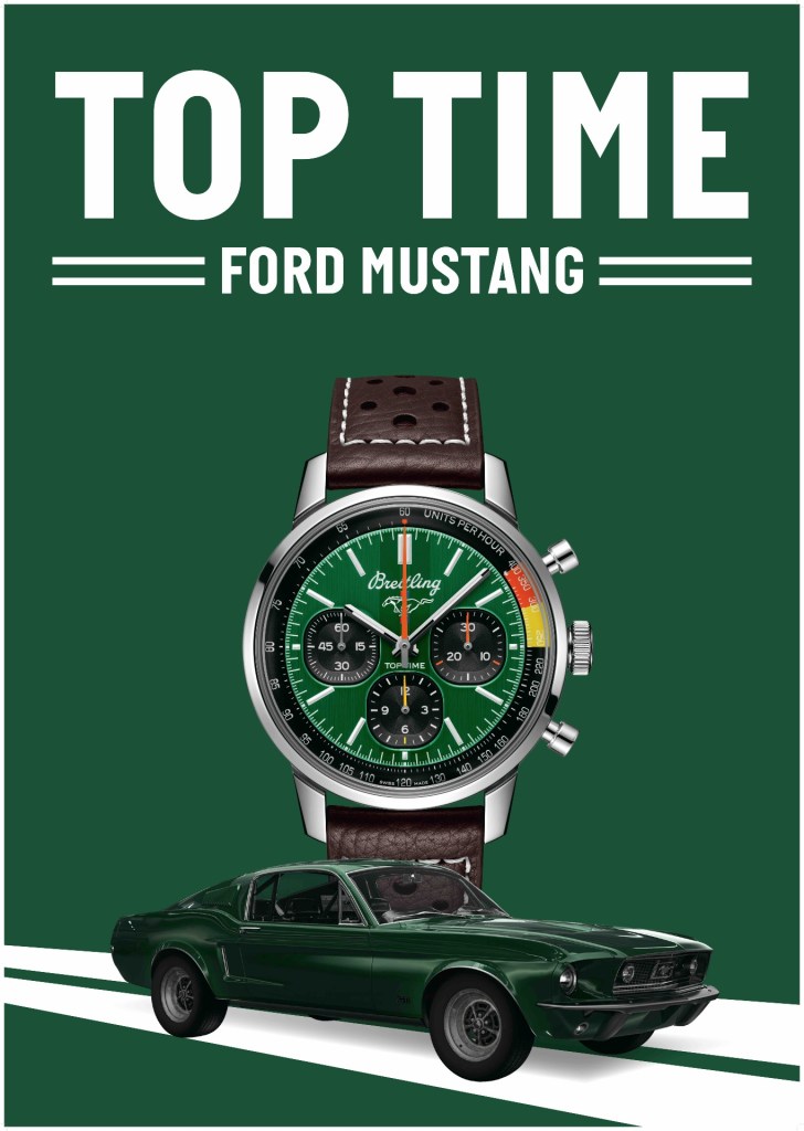 Esta ardiente tradición continúa hoy con la asociación de Breitling con algunos de los nombres más conocidos del mundo motor para crear los diseños Top Time: marcas de motociclismo como Deus Ex Machina y Triumph Motorcycles y de automovilismo como Ford Thunderbird y Mustang, Chevrolet Corvette y Shelby Cobra.
