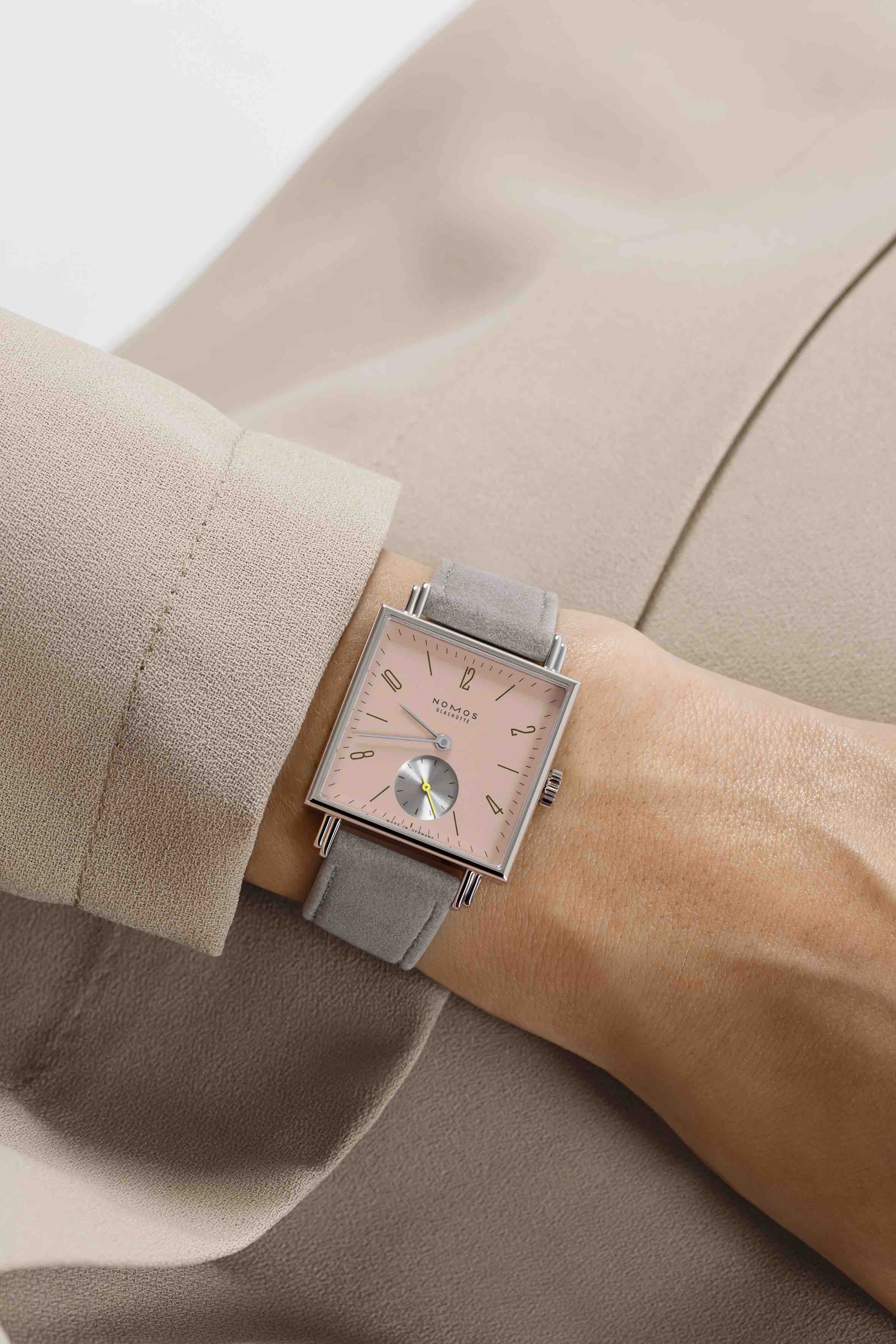 La colección Tetra es la octava edición de NOMOS Glashütte y destaca por sus colores y movimientos excepcionales. Cada reloj tiene una pequeña esfera de los segundos en un color contrastante, lo que los hace aún más llamativos. Los cuatro modelos están disponibles en plata, rosa, berenjena y nude, y son el complemento perfecto para cualquier atuendo, desde elegante hasta casual.