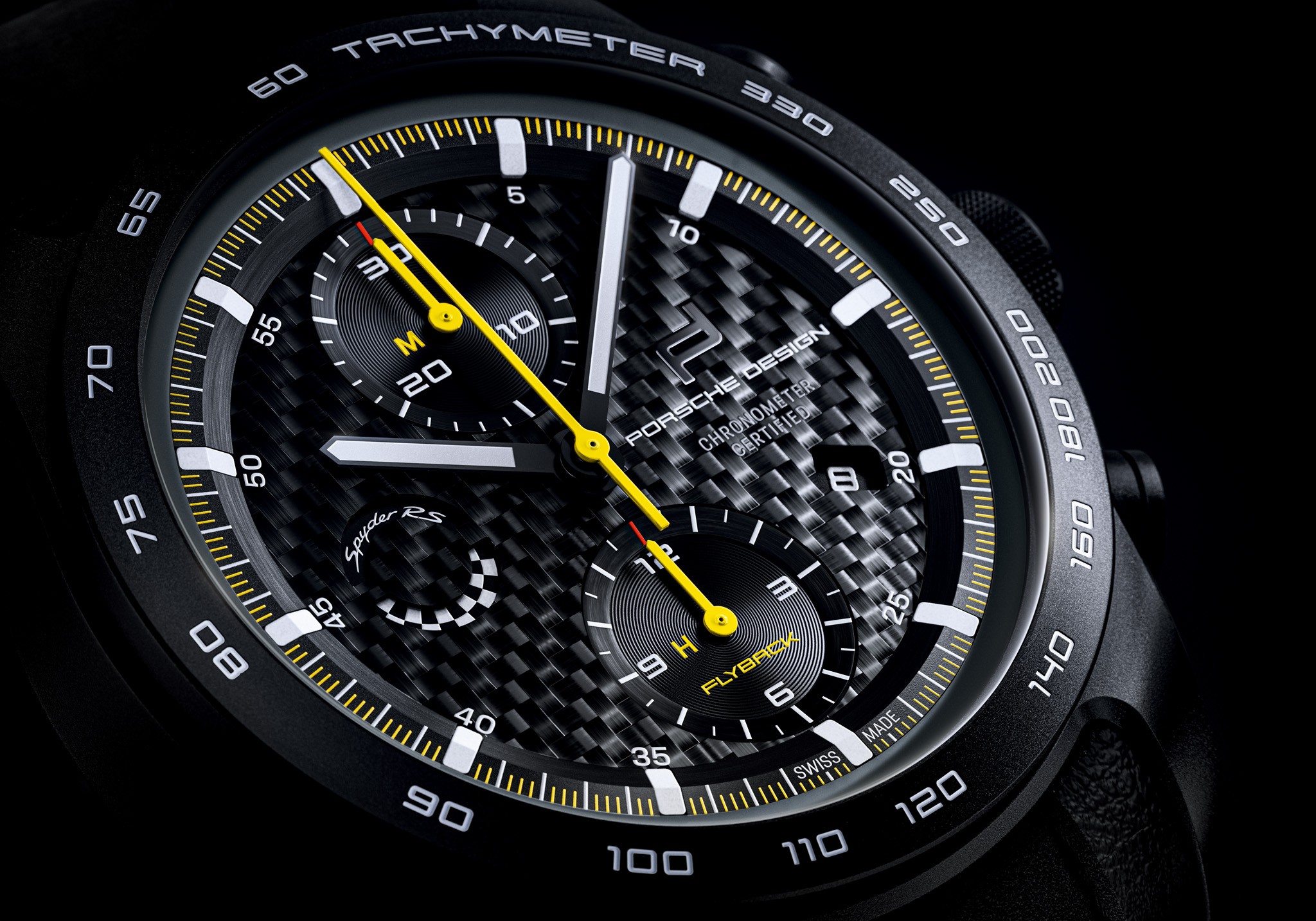 Para una conexión aún más estrecha con el 718 Spyder RS, el reloj incluye una correa de cuero confeccionada en piel negra suave de vehículo y una hebilla de Race-Tex negro con el logotipo «Spyder RS» grabado en la posición de las 6 en punto.