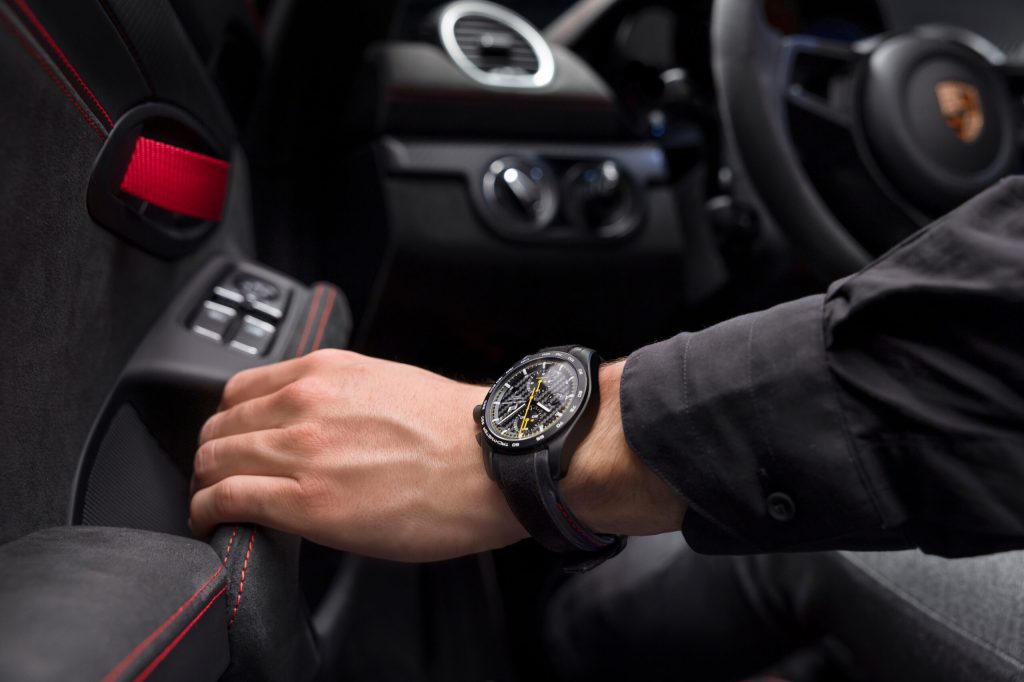 Este exclusivo cronógrafo está disponible exclusivamente para los compradores del nuevo Porsche 718 Spyder RS y Porsche 718 Spyder RS con paquete Weissach.