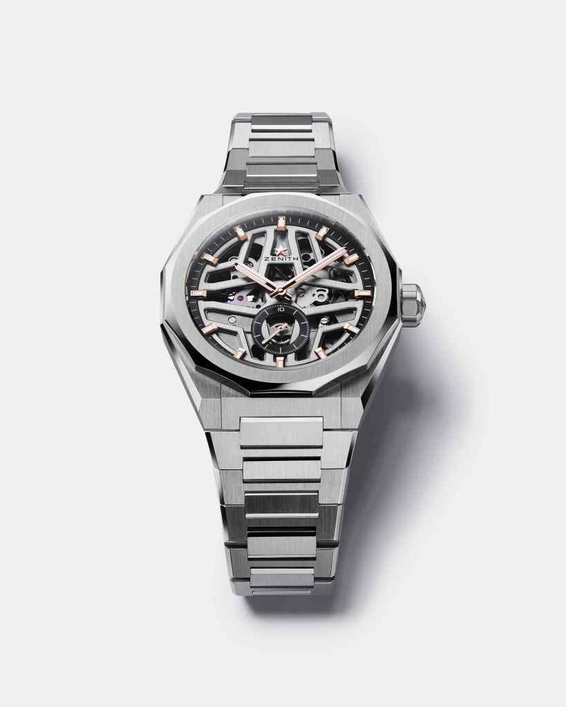 Inspirado en los paisajes urbanos modernos, donde la arquitectura y la luz se entrelazan en un baile constante, el DEFY Skyline Skeleton combina una esfera abierta con una versión esqueletizada del movimiento automático de alta frecuencia El Primero.