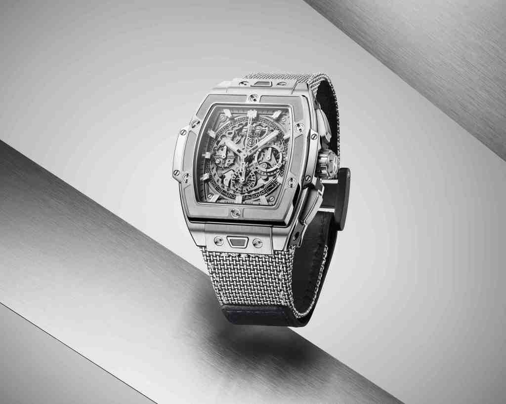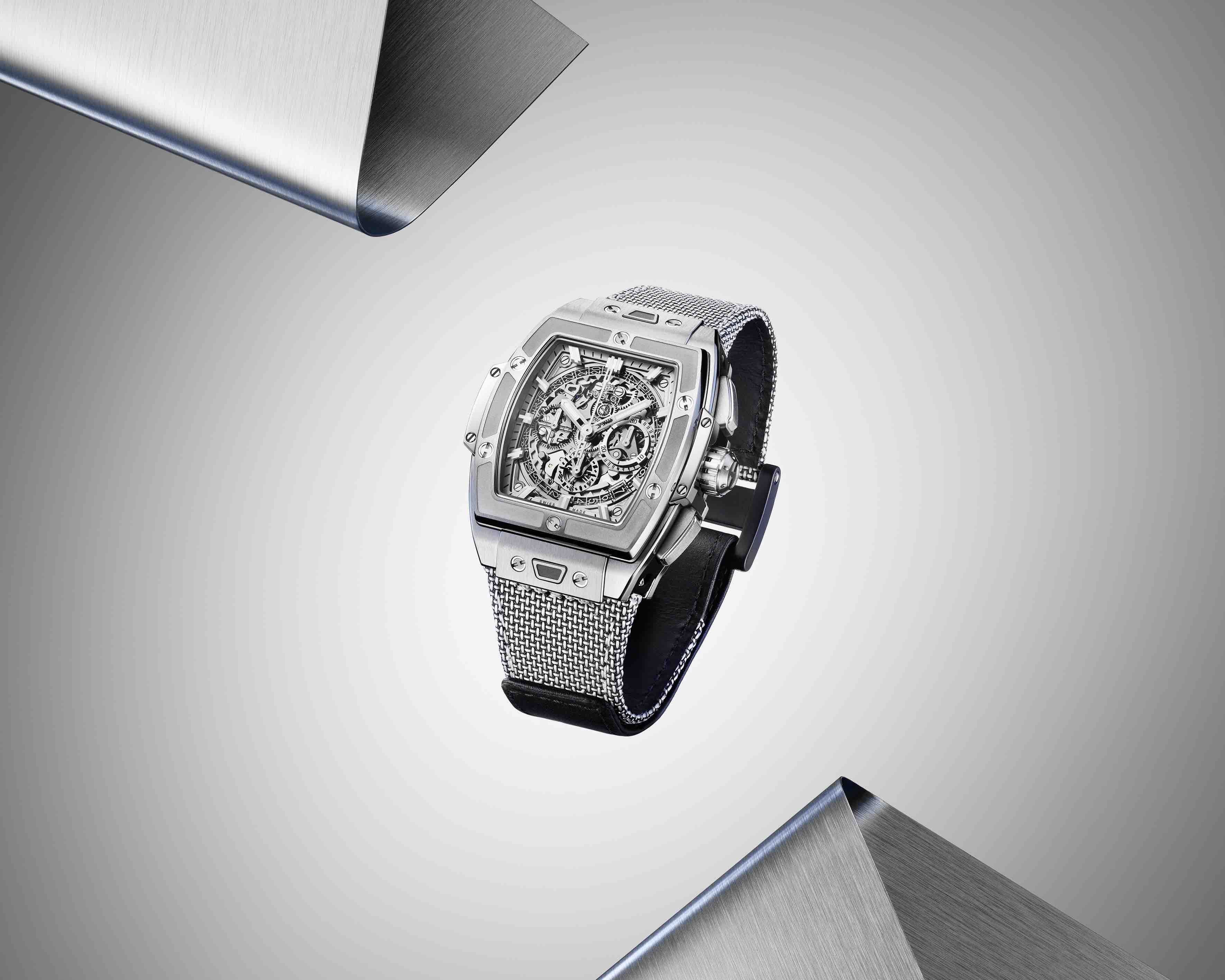 La característica distintiva del Spirit of Big Bang Essential Grey es su elegante diseño en tonos de gris. Toda la caja, bisel, tornillos, corona, botones, fondo y cierre desplegable están fabricados en titanio, material por todos conocido por su ligereza y resistencia. Hublot ha tratado cuidadosamente cada componente del reloj para mantener una perfecta legibilidad de las indicaciones en la esfera. Los acabados, como el pulido espejo, el esmerilado y los índices luminiscentes, realzan la arquitectura de esqueleto del calibre HUB4700, un movimiento cronógrafo automático de alta frecuencia que garantiza una precisión excepcional.