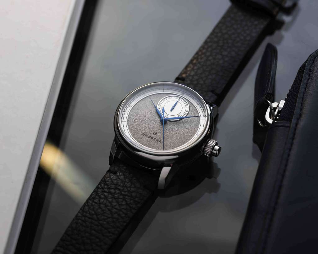 Esta vez, se unieron a Massena LAB para co-producir una creación única. Después del éxito de Le Régulateur, que fue preseleccionado para el Grand Prix d’Horlogerie de Genève, esta colaboración se centra en el cronógrafo de un solo pulsador, una especialidad altamente técnica que permite iniciar, detener y reiniciar el cronógrafo con un solo botón. En este reloj, esto se expresa con gran simplicidad a través de un totalizador de 30 minutos en una esfera separada a las 12 en punto.