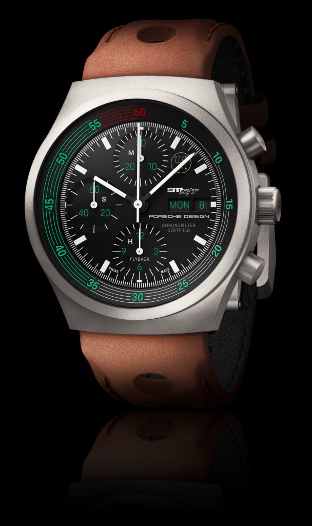 El estuche del cronógrafo está hecho de titanio ligero y arenado, reflejando el concepto de diseño liviano del Porsche 911 S/T. La esfera y el anillo del bisel del reloj reflejan los instrumentos de visualización históricos del 911 S/T.
