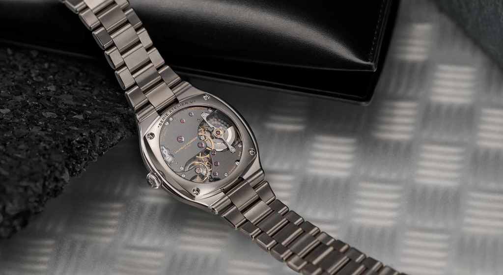 El Sport Auto 40 no solo se inspira en el mundo de las carreras en su diseño, sino que también refleja la estética de los autos de carreras. La caja de titanio grado 5 de 41.5 mm presenta curvas redondeadas y líneas arqueadas, recordando la aerodinámica de los autos de competición. El brazalete de titanio grado 5 se integra perfectamente en el diseño, combinando superficies satinadas verticales con lados pulidos.