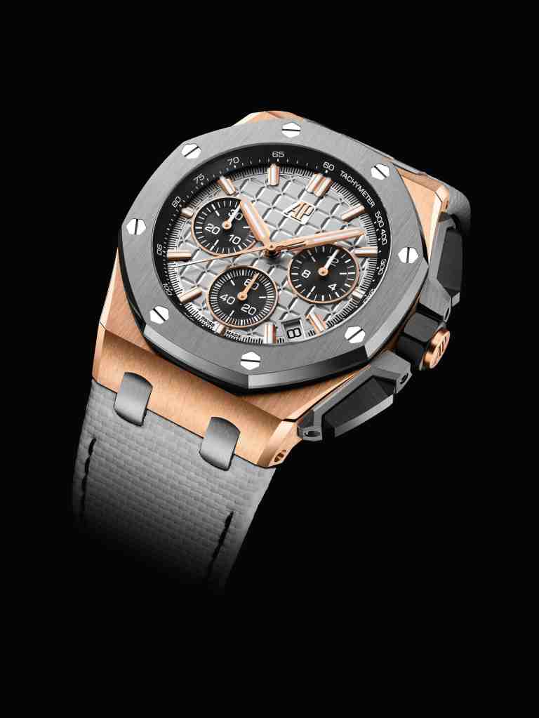 En cuanto al uso del oro rosa de 18 quilates, es una elección que no sorprende viniendo de una marca tan prestigiosa como Audemars Piguet. El oro rosa añade un toque de calidez y elegancia a los relojes, y complementa a la perfección el tono oscuro de la cerámica y el brillo del titanio. Además, el oro rosa es un material noble que conserva su valor a lo largo del tiempo, convirtiendo estos relojes en auténticas piezas de inversión.